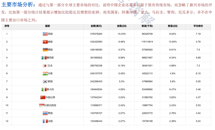 南美智利、烏拉圭,非洲贊比亞等市場潛力巨大。然而,中國出口仍集中于傳統(tǒng)市場,阿塞拜疆、蒙古等新興市場未被充分開發(fā)!如何搶占先機?