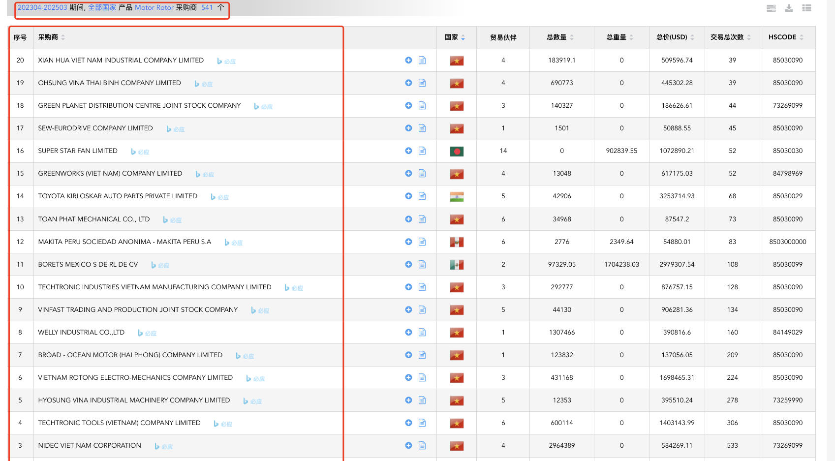 覆蓋190+國家,直接觸達電機轉(zhuǎn)子(Motor Rotor)等產(chǎn)品的精準買家信息
