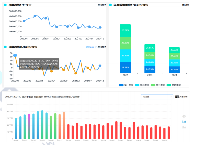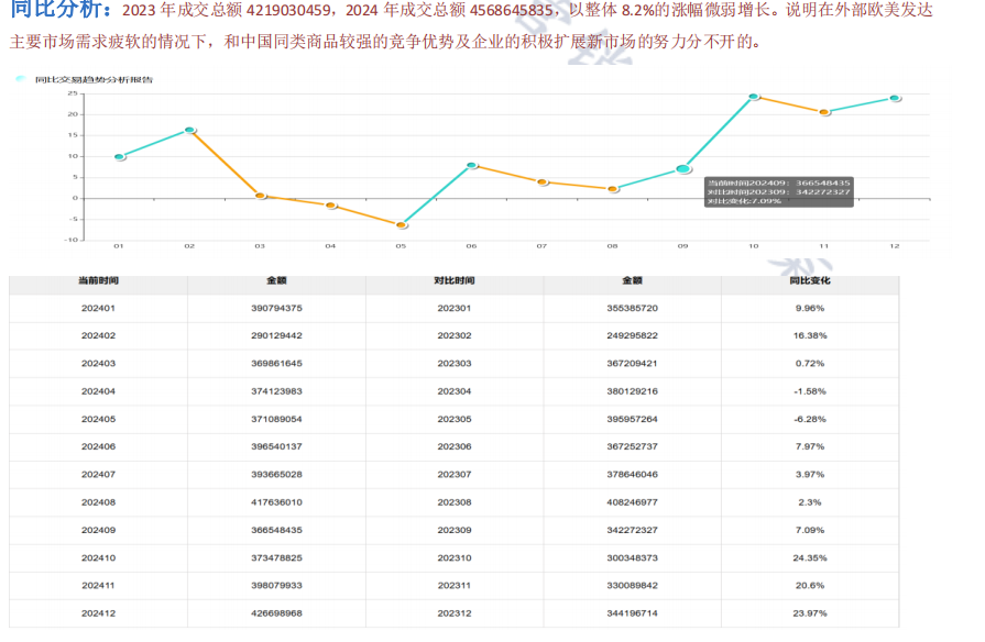 結(jié)合季度趨勢分析(如2024年環(huán)比增長8.2%),提前制定出口策略。
