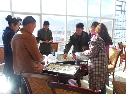 “我為大家包餃子”活動(dòng)名稱(chēng),正體現(xiàn)了十一局拉薩員工相互關(guān)心、相互照顧的融洽工作氛圍。員工輪流到食堂為大家包餃子,場(chǎng)面異常熱烈,其樂(lè)融融。等待熱騰騰餃子出爐的時(shí)間里,所有員工圍在大蛋糕前,為12月份過(guò)生日的同事送上祝福并獻(xiàn)唱生日歌。