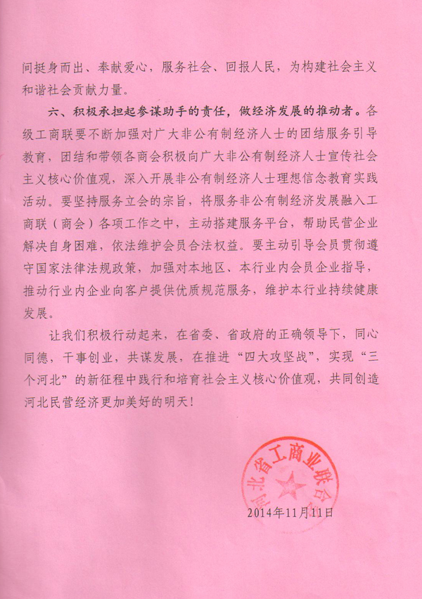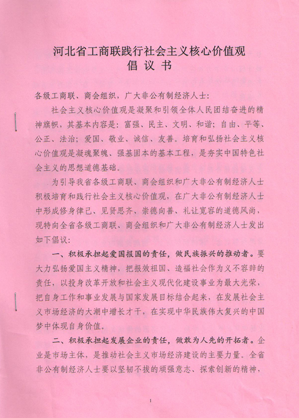 河北省工商聯(lián)踐行社會主義核心價值觀倡議書