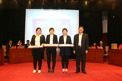 4月18日上午,“中太建設(shè)集團企業(yè)文化及勞動保護法知識競賽”在中太大廈二樓報告廳隆重舉行,邀請集團公司黨委副書記、工會主席鐘崇鶴,副總工程師謝良波和工會副主席、企業(yè)文化部總經(jīng)理張娟娟蒞臨現(xiàn)場擔(dān)任評委,對各隊答題情況做出點評和評分;來自集團機關(guān)、鋼結(jié)構(gòu)公司、三河分公司、物業(yè)公司、宏業(yè)公司和第三建安公司共六支代表隊展開激烈角逐,經(jīng)過必答題、搶答題和案例分析題三輪比賽之后,根據(jù)各參賽代表隊綜合成績給予最后分數(shù),最終集團機關(guān)代表隊、鋼結(jié)構(gòu)公司代表隊和三河分公司代表隊分獲一、二、三等獎。比賽最后,張娟娟總經(jīng)理對整場比賽做出點評。
