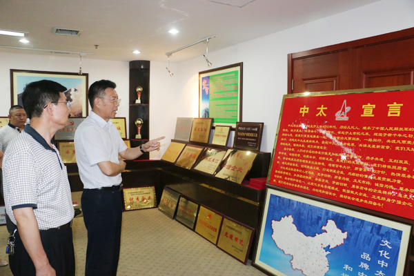 7月23日下午,由省工商聯副主席常衛(wèi)華帶隊的督導組,在廊坊市委統(tǒng)戰(zhàn)部副部長、工商聯黨組書記劉玫等領導的陪同下,來到中太建設集團調研以守法誠信為重點內容的深入開展理想信念教育實踐活動情況,聽取了集團公司黨委副書記、工會主席鐘崇鶴關于集團公司開展以誠信守法為為重點內容的理想信念教育實踐活動情況的匯報,觀看了活動宣傳展板、并參觀了集團公司二樓陳列室和十五樓榮譽室。
