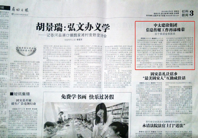 此次榮譽獲得是中國建筑業(yè)協(xié)會對中太建設集團公司信息傳媒工作所取得成績肯定,也為下一步工作增添了信心和動力。企業(yè)文化部將再接再厲,為集團公司信息宣傳工作做出新更大貢獻。