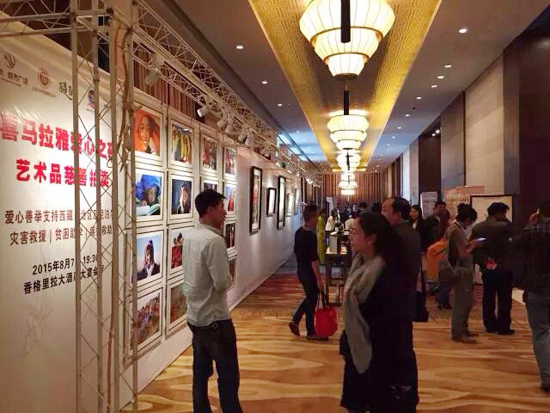 當(dāng)天晚上8點,來自當(dāng)?shù)卣块T、行業(yè)組織、企業(yè)代表、媒體單位和其他社會各界愛心人士近500人齊聚一堂,現(xiàn)場座無虛席。在一段震撼人心的“尼泊爾地震”視頻后,活動正式拉開序幕。拍賣從當(dāng)?shù)財z影家的兩幅作品開始,隨后的藏香、藏式珠寶、唐卡、油畫等拍品讓現(xiàn)場的氣氛持續(xù)升溫,現(xiàn)場嘉賓被精彩紛呈的藝術(shù)品吸引,更為藝術(shù)家和收藏家們的慷慨捐贈所感染,紛紛舉手競拍,爭相獻出自己的愛心。在不到一個半小時的時間里,所有近20件拍品全部成交,共募集善款282800元。