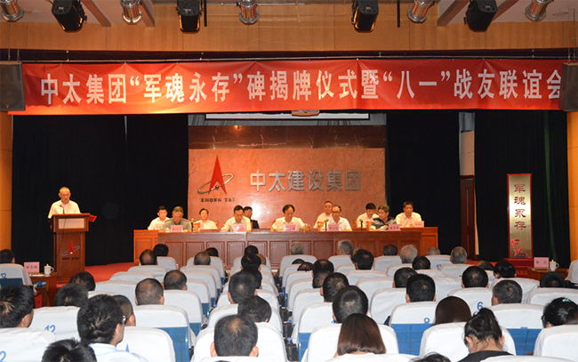 2018年7月26日上午,久違而清脆的集合號(hào)在中太大廈二樓報(bào)告廳久久回蕩,拉開(kāi)了中太集團(tuán)“軍魂永存”碑揭牌儀式暨慶“八一”戰(zhàn)友聯(lián)誼會(huì)的序幕。中太集團(tuán)在廊各單位部分員工、機(jī)關(guān)各部門(mén)的全體員工和軍轉(zhuǎn)工在崗與退休戰(zhàn)友代表共180多人,著裝整齊,嚴(yán)陣以待,期待這一莊嚴(yán)時(shí)刻的到來(lái)。