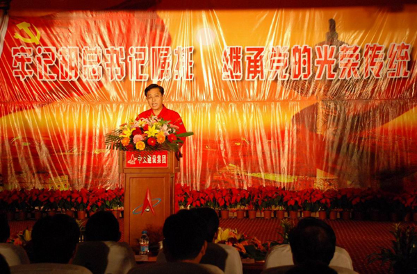 大會指出,5月23日我們接到上級組織交給的過渡安置房的安裝任務后,集團黨委書記、董事局主席李文健親帥公司數(shù)位領導多次前往災區(qū)督戰(zhàn)指導。已于6月15日超額完成了1500套過渡安置房安裝任務,兌現(xiàn)了胡錦濤總書記下達給我們的“軍令狀”。