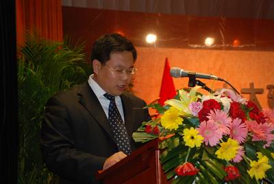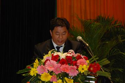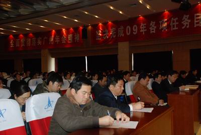 中太大廈二樓報(bào)告廳,鮮花吐艷,綠葉蔥蔥!叭尕瀼芈鋵(shí)廣州年會(huì)精神,堅(jiān)決完成09年任務(wù)目標(biāo)”的大幅標(biāo)語(yǔ)格外醒目。