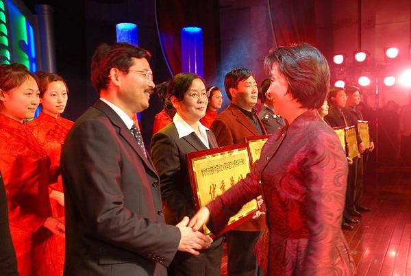 12月30日晚,由市委宣傳部組織的廊坊市紀(jì)念建國60周年建市20周年文化活動表彰大會暨迎新春文藝晚會在武警學(xué)院禮堂舉行。中太建設(shè)集團(tuán)獲優(yōu)秀單位表彰,集團(tuán)工會副主席張娟獲先進(jìn)個人表彰。隨后,空軍政治部歌舞團(tuán)為1000余名觀眾奉獻(xiàn)了一臺精彩的文藝晚會。市委副書記吳曉琳等市領(lǐng)導(dǎo)為獲獎單位及個人頒獎并觀看了演出。 |