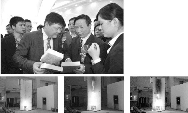 上圖:上海雅達特種涂料有限公司董事長顧衛(wèi)星(前左)在京向住建部領導和專家介紹創(chuàng)新產(chǎn)品聚合聚苯板的性能和特點