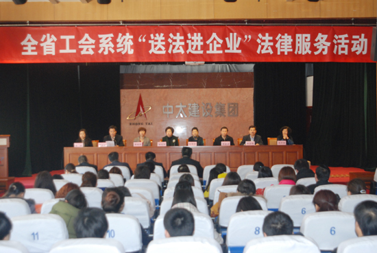 在深入開展黨的群眾路線教育實(shí)踐活動中,為更好地服務(wù)企業(yè)與職工,建立完善和諧的勞動關(guān)系,營造企業(yè)以法治企、健康發(fā)展的良好氛圍。3月20日上午,由河北省政協(xié)常委、省總工會巡視員郭俊苓帶隊的省工會系統(tǒng)“送法進(jìn)企業(yè)”法律服務(wù)工作組(省總工會法律部部長劉偉青、省總工會法律部副部長馬金占一行3人),在市總工會黨組成員、副主席田會蘭的陪同下,走進(jìn)中太建設(shè)集團(tuán),為集團(tuán)公司員工帶來了法律服務(wù)講座,并現(xiàn)場贈發(fā)了相關(guān)書籍。市總工會副調(diào)研員、辦公室主任李寶秋主持講座。