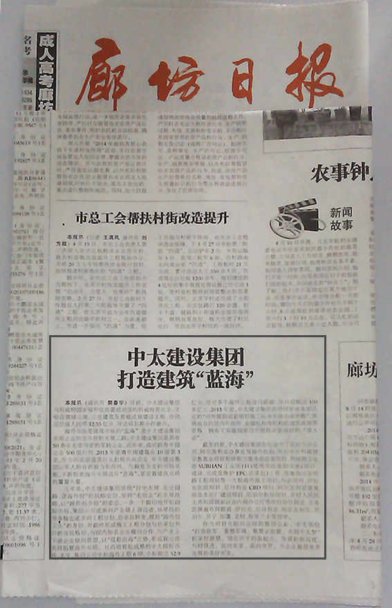 廊坊日報報道了中太建設(shè)集團打造建筑“藍!