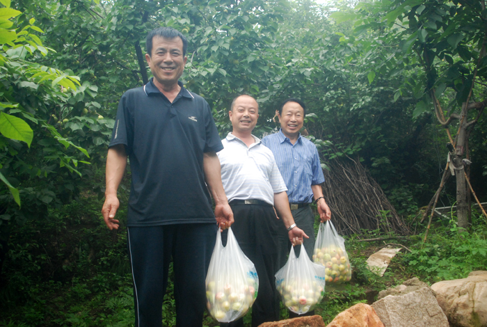 從京承高速公路下道,兩輛大巴車沿著崎嶇山路緩慢行駛。山道兩側(cè)灌木郁郁蔥蔥,置身于這天然氧吧,清新的空氣順暢地能讓人一下子呼吸到了丹田而心神氣爽。一路上,路邊采摘的果園比比皆是?諝庵心枪麑嵣l(fā)出的清香,直入心脾,令人口舌生津。