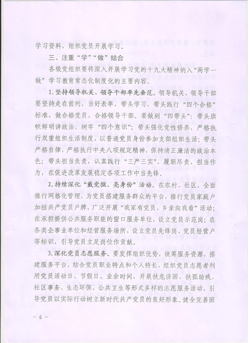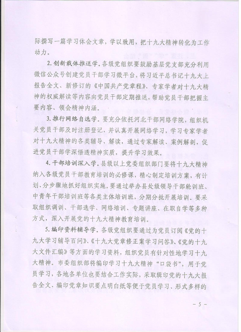 現(xiàn)將中共廊坊市委組織部《關(guān)于在推進(jìn)“兩學(xué)一做”學(xué)習(xí)教育常態(tài)化制度化中深入開(kāi)展學(xué)習(xí)貫徹黨的十九大精神的通知》轉(zhuǎn)發(fā)給你們。請(qǐng)認(rèn)真按照通知要求,緊密聯(lián)系本單位實(shí)際,把深入開(kāi)展學(xué)習(xí)貫徹十九大精神納入“兩學(xué)一做”學(xué)習(xí)教育常態(tài)化制度化,把十九大精神學(xué)深學(xué)透,全面把握十九大精神實(shí)質(zhì)。