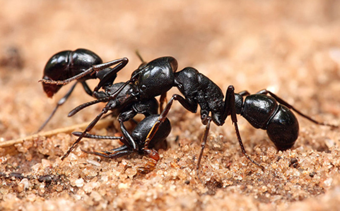 小螞蟻們慢慢的,一點一點的,堅持不懈地在這條縫隙上打洞。